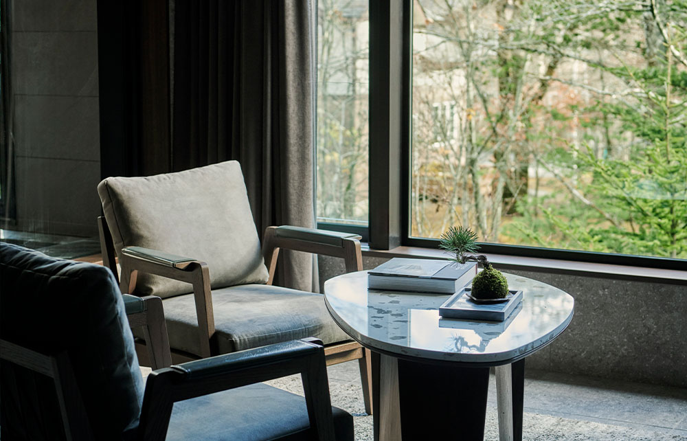 A resort that stands quietly in a forest of Karuizawa soothes the mind and