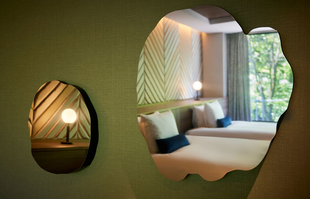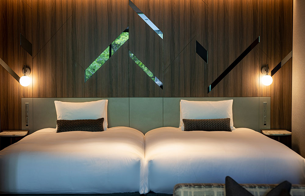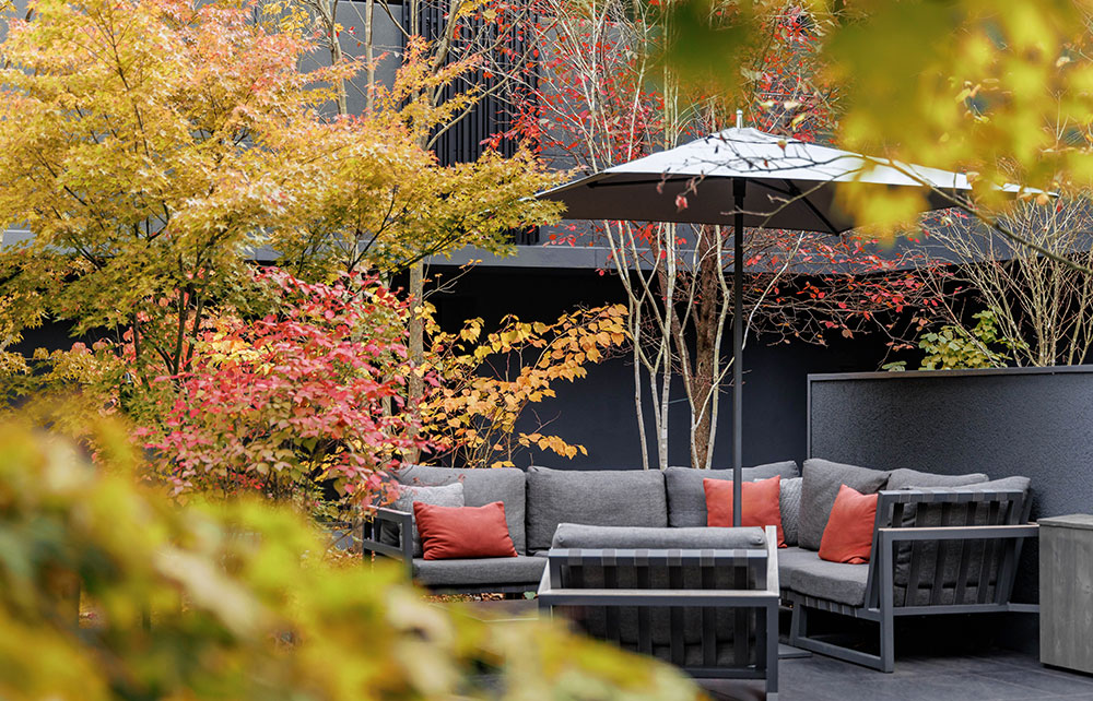 FUFU Kyu-Karuizawa stands beside the Kumoba Pond. When you step inside the hotel, you’ll find a spacious lounge. With a courtyard surrounded by greenery and a gorgeous, modern building, the hotel reminds one of a vacation home in Karuizawa many long for.