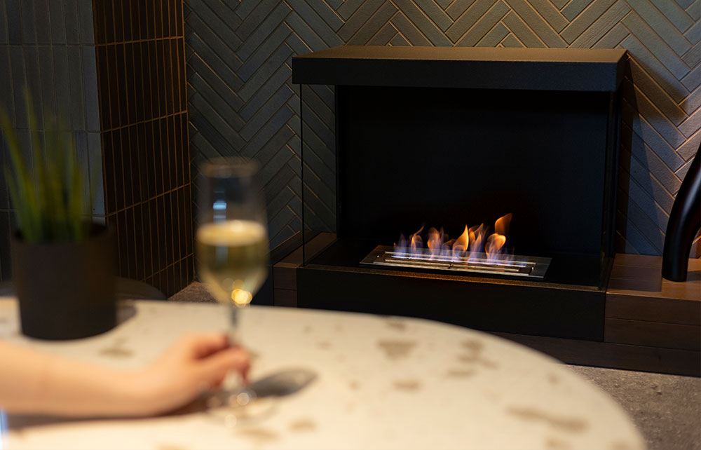 You can feel the pleasant wind and sunbeams streaming through the leaves by the window. The fireplace installed in all rooms envelops the room with warmth. The walnut color and the soft feel of the carpet creates a sophisticated atmosphere of a vacation home.