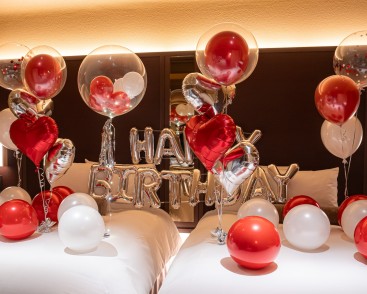 「ふふ 旧軽井沢 静養の森 」ではバルーンサービスを承っております。大切な方のお誕生日やお二人の特別な記念日など、特別な日にお部屋を彩るバルーンのご用意はいかがでしょうか。ご予約はこちらより承っております。